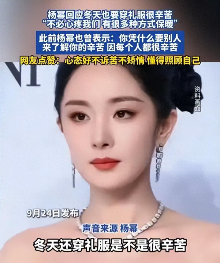 杨幂的直播回答火了。她在直播中被问到“冬天穿薄礼服会不会冷”,她幽默地回应:“不必心疼我们,有很多种方式保暖。”这句话直接冲上了热搜,一时间引发了网友们的热议。相对于以往那些明星“卖惨”的做法,杨幂的这种淡然回答,不仅让人眼前一亮,还让人看到她背后的职业素养和高情商。