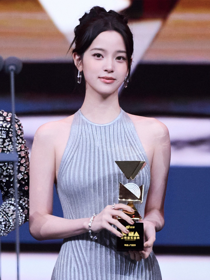 她把琴的旋律穿在身上,欧阳娜娜穿银线裙侧首,露背设计似音符跃动