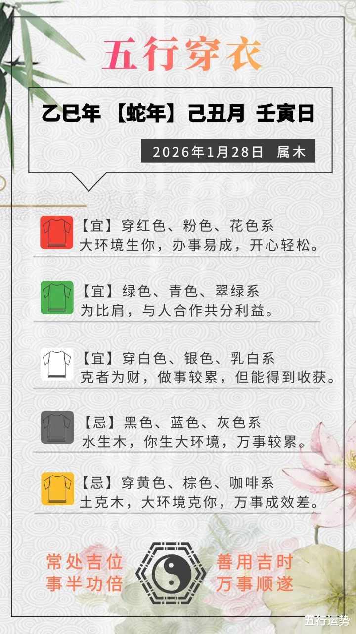 【每日运势】2026年1月28日生肖运势丨偏财运最好的生肖(五行穿衣在最后)
