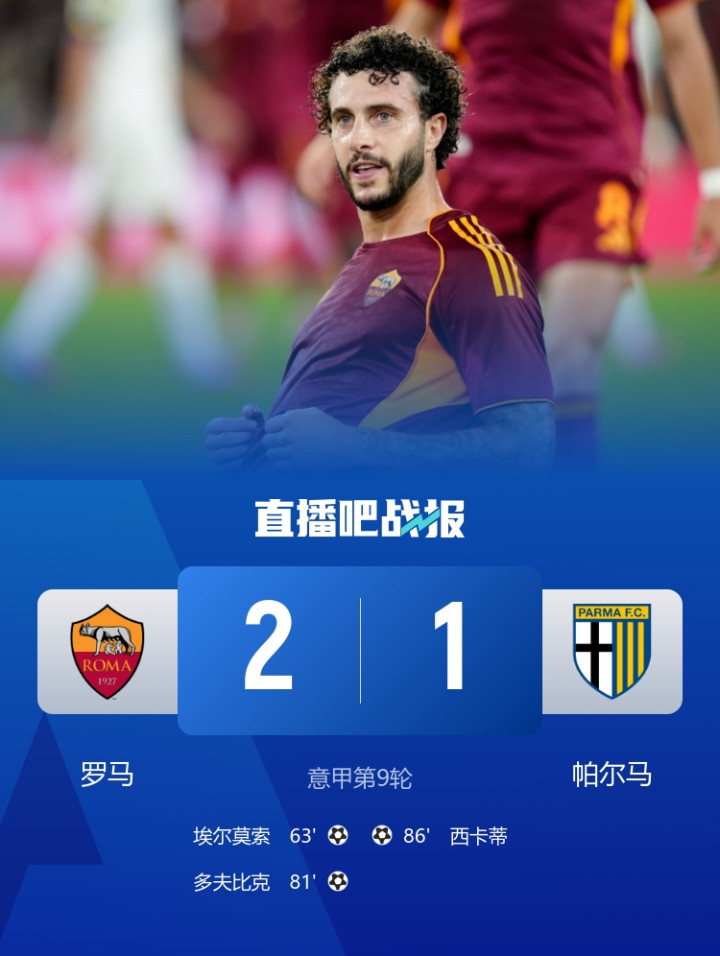 经济又实惠! 罗马9轮进10球现并列榜首, 6次1球险胜输球也仅输1球