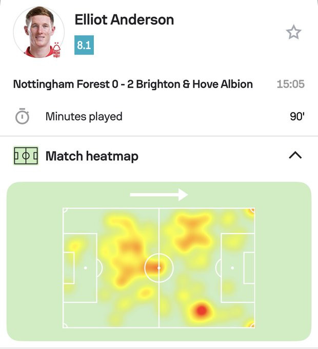Sofascore数据统计,埃利奥特-安德森在今天的比赛中成为近十个赛季英超中首位在单场比赛同时达成以下数据的球员: