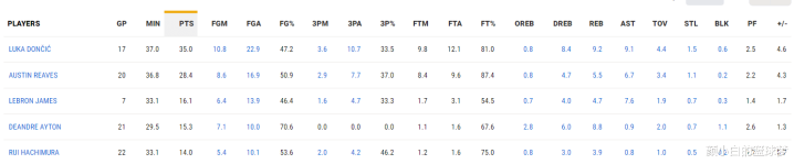 本赛季湖人有5人场均得分上双,詹姆斯场均16.1分7.6助攻4.7篮板0.7抢断0.3盖帽,命中率46.4%,三分命中率33.3%,正负值+1.7,他是球队的第三得分点,这位41岁的老将这数据不差吧?